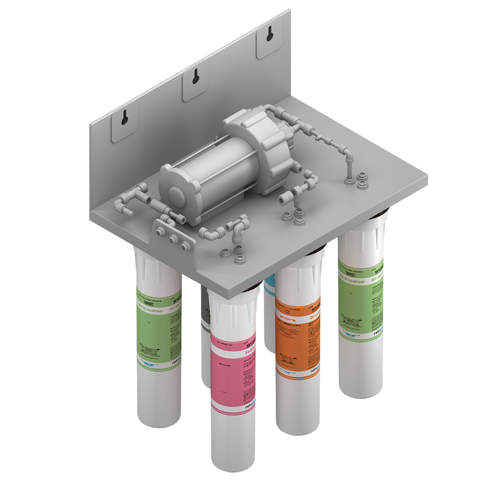 Osmos farklı iyon değişimlerine sahip olan ve aralarında bir yarı geçirgen membran bulunan iki çözeltinin osmotik basınç vasıtasıyla iyon derişimlerinin eşitlenmesi olayıdır. Bu olayı tersine çevirmek için, bir pompa ile osmotik basınçtan daha büyük bir basınç uygulandığında yarı geçirgen olan ve içinde 5 Angostrom boyutunda delikler bulunan membran sadece saf suyu geçirirken bakterileri, pirojenler, organik maddeler, askıda katı maddeler, erimiş tuzlar, nitrit, alüminyum ve ağır metalleri tutar. Benzerlerinden farklı olarak RainWater Pure Plus-Pro sistemleri kolay kurulum ve hızlı filtre değişimi sağlayan benzersiz çeyrek dönüş sistemine sahip KULLAN – AT tipi filtrelerle donatılmıştır. Bu sistem sayesinde aynı filtre kabı tekrar tekrar kullanılmayarak üst seviye hijyen ve filtre güvenliği sağlanır.
